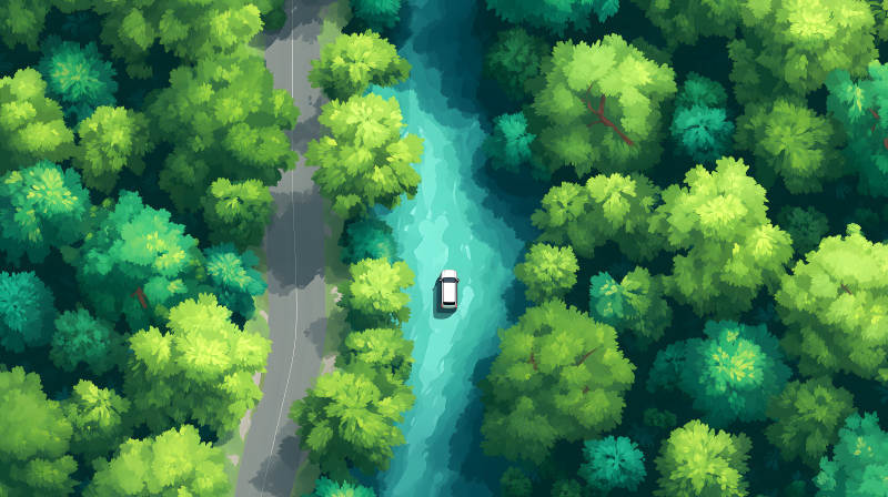 纸艺风格的森林溪流