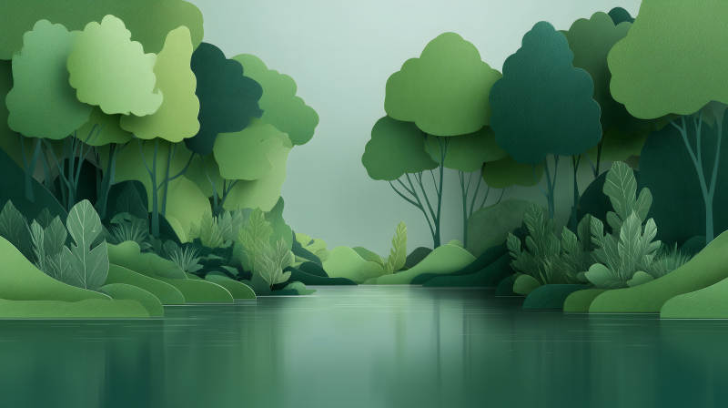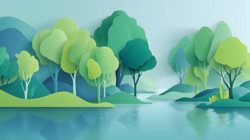 纸艺风格的绿色森林风景