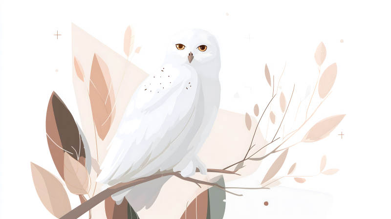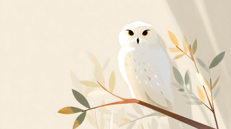 雪鸮与秋季静谧枝叶