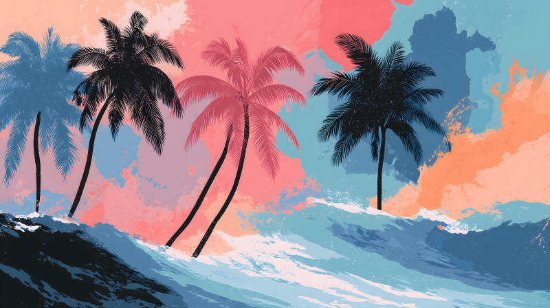 海浪拍打下的棕榈树