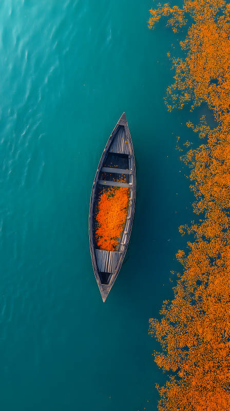 宁静海面上的橙花小舟