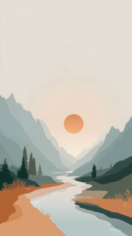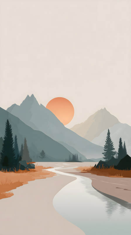 宁静祥和的山河日落