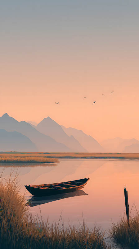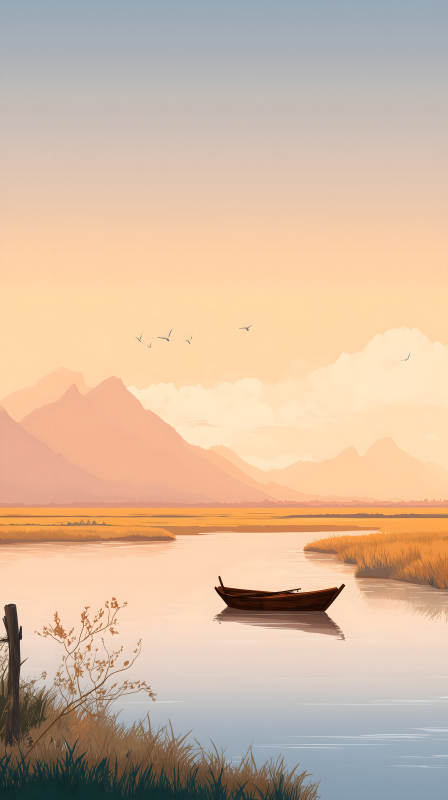 宁静祥和的日落湖景