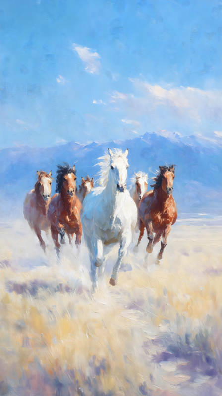 奔腾的野马群自由的象征