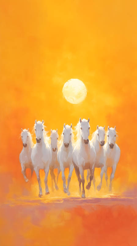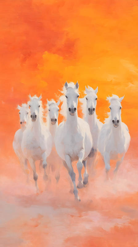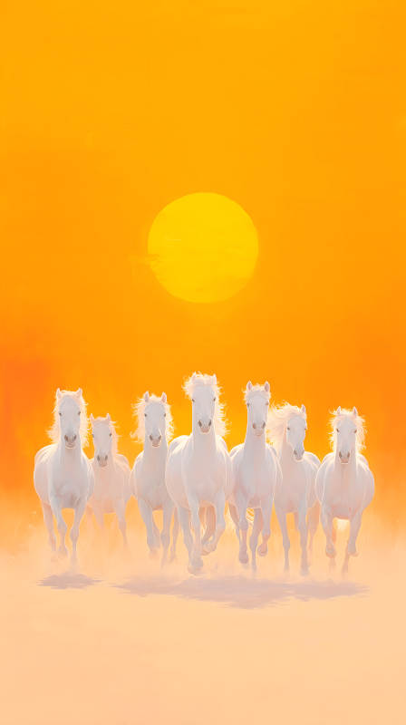奔腾的白马与落日