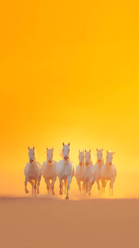 金色夕阳下的白马奔腾