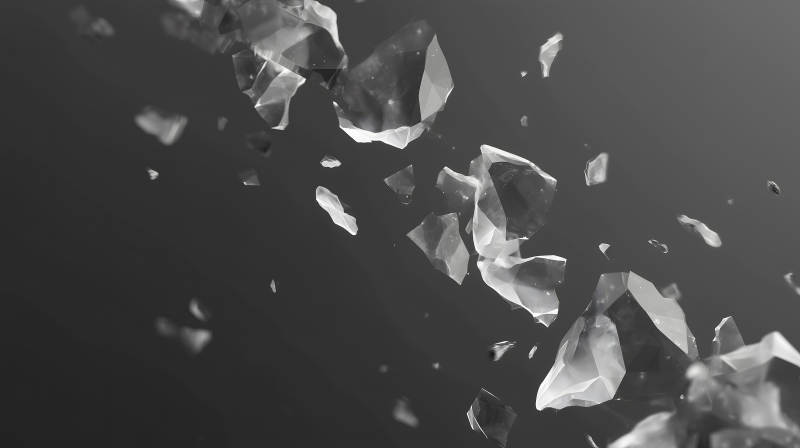 破碎的玻璃碎片飞舞