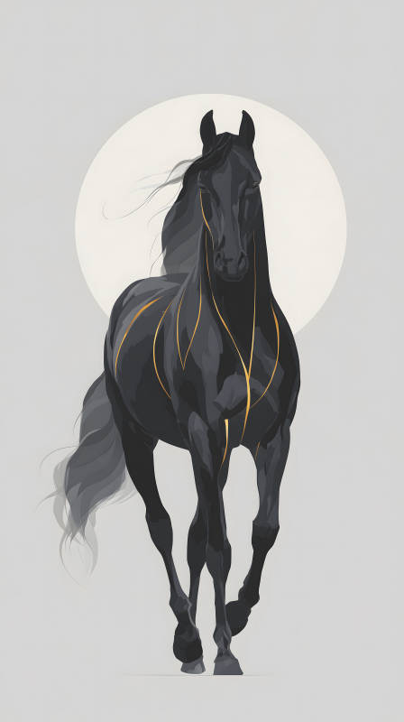 优雅的黑马与金色纹理