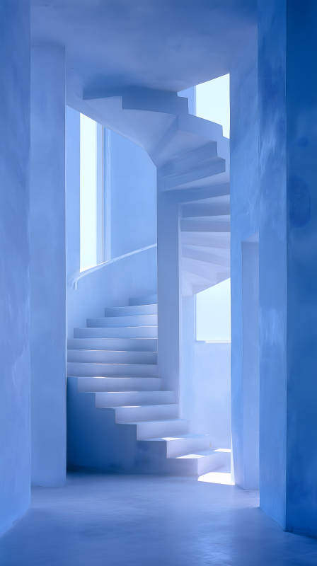 蓝色建筑里的螺旋楼梯