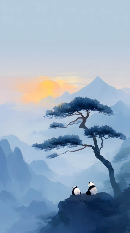 山峦日出熊猫远眺