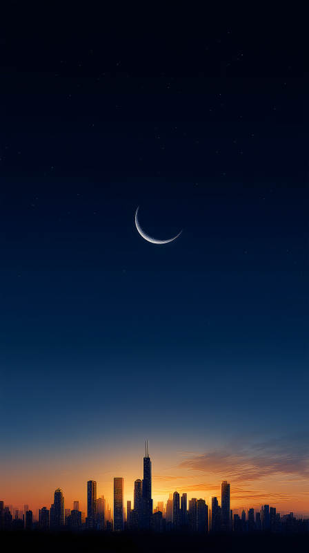 月牙下的城市剪影