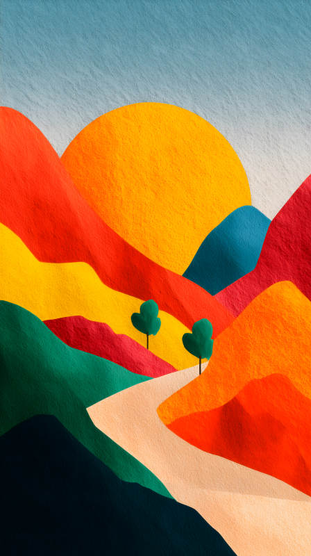 夕阳下的彩色山峦