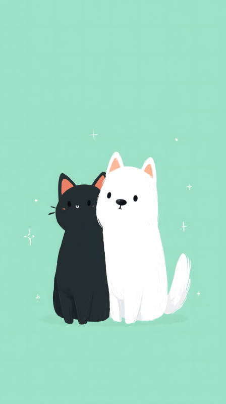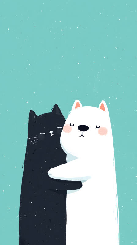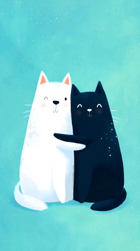 黑白猫咪相互拥抱