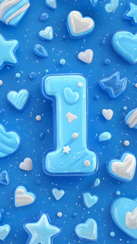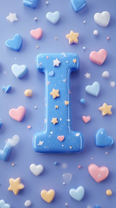 蓝色背景上的字母I和装饰