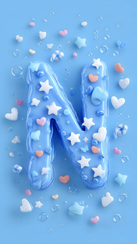 梦幻蓝色字母N装饰