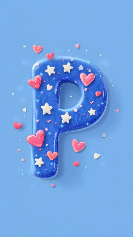 蓝色背景下可爱的P字母