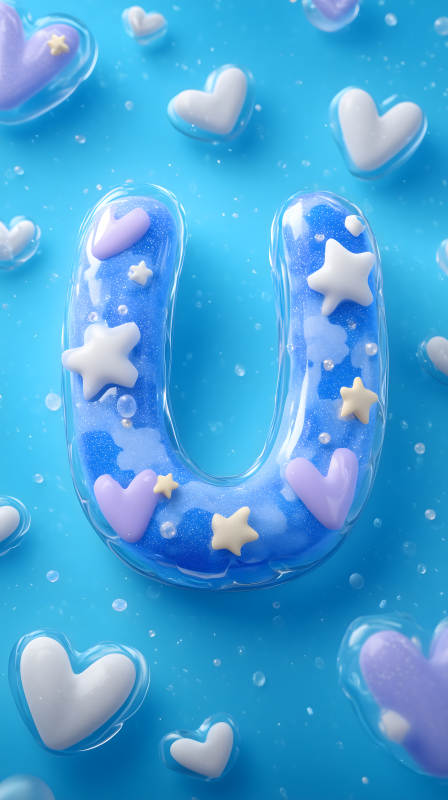 梦幻蓝色字母U装饰
