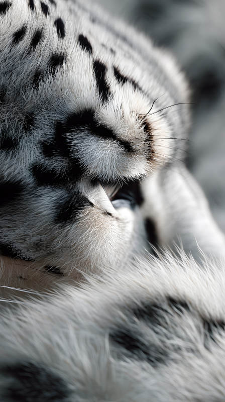 雪豹特写毛发细腻眼睛半闭