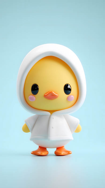 可爱小黄鸭身着白色连帽衫