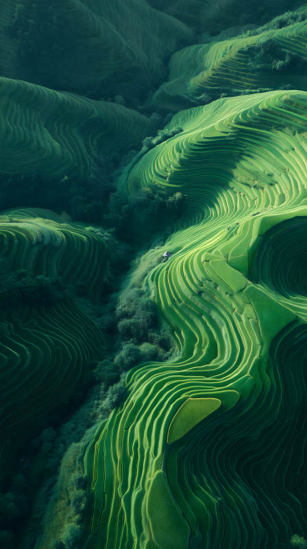 梯田山脉绿意盎然生机勃勃