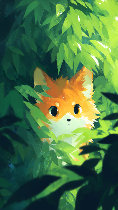 躲在树叶中的小狐狸