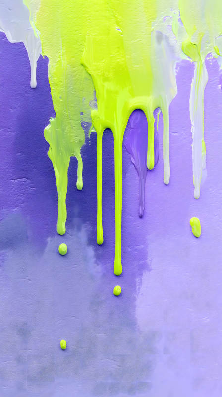 抽象滴落的荧光颜料在紫色背景上