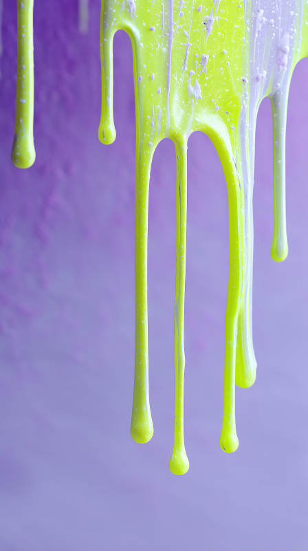 柠檬黄色的液体在紫色背景上滴落