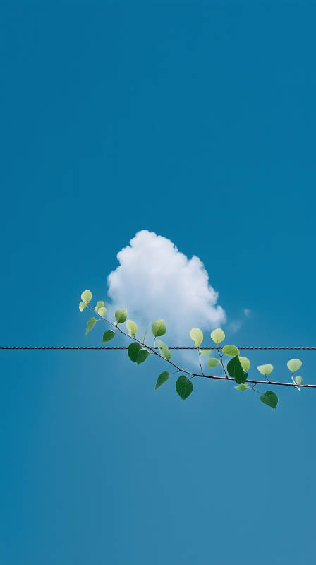 蓝天白云绿叶简约风