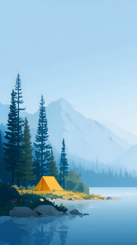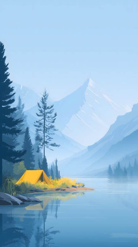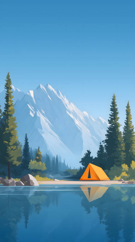 湖边露营山景图清澈唯美