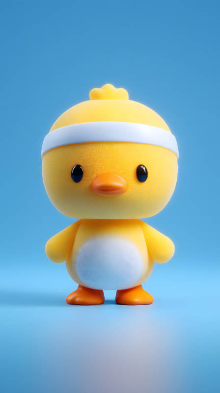可爱卡通小黄鸭戴着白色头带