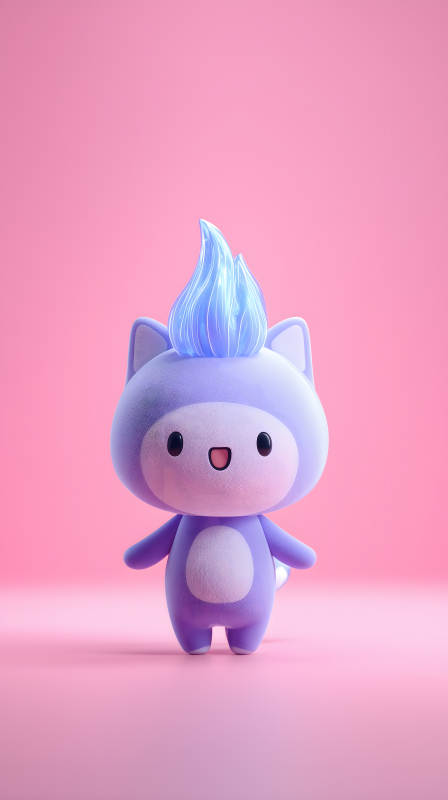 可爱卡通猫咪头顶蓝色火焰