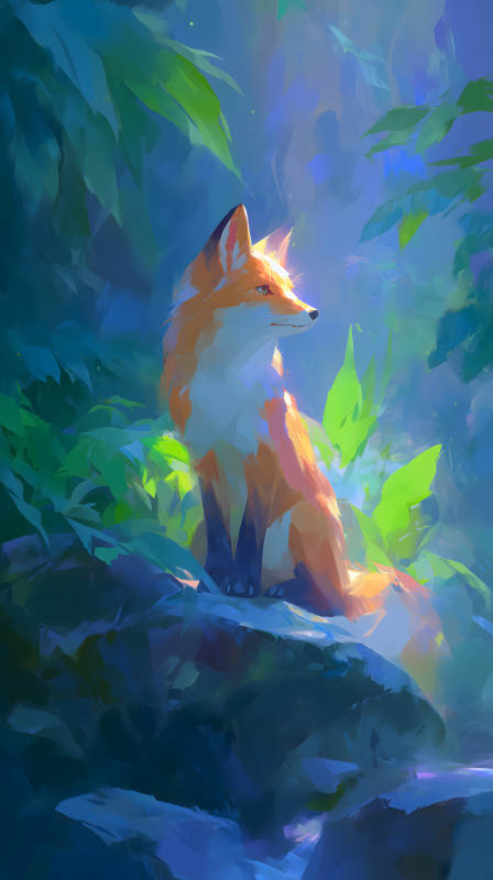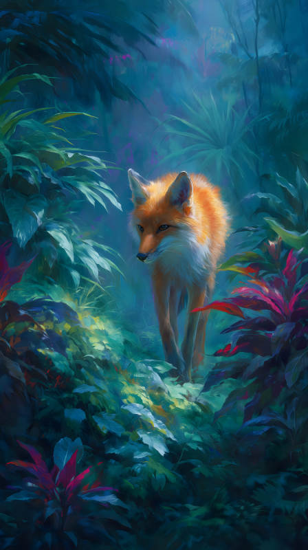 丛林中的狐狸光影交织的奇幻景象