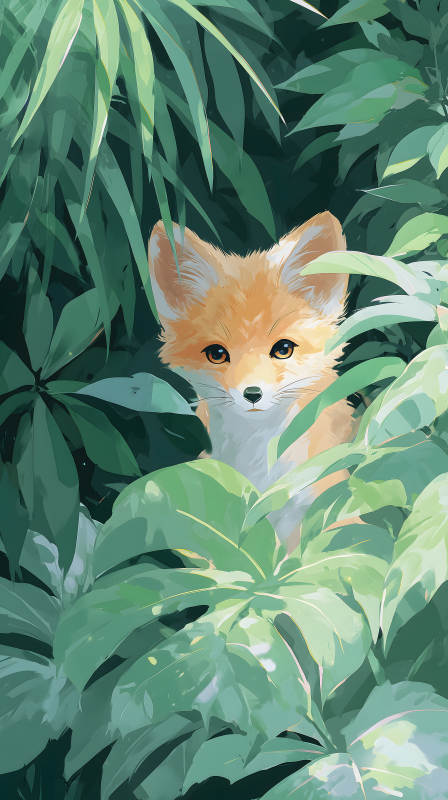 丛林中的狐狸油画橙色毛发与绿色植被