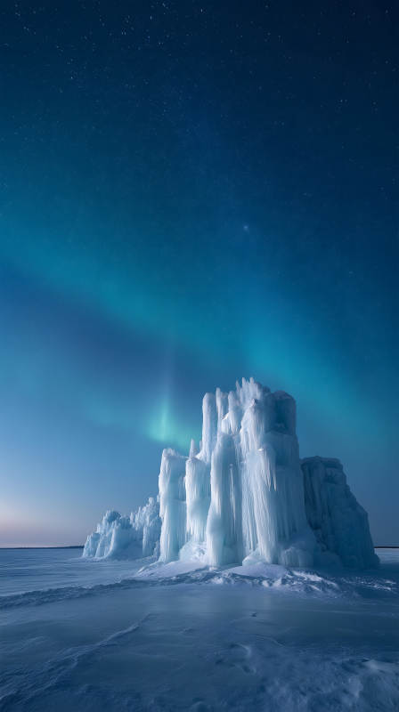 冰雪奇观极光夜空下的冰雕奇景