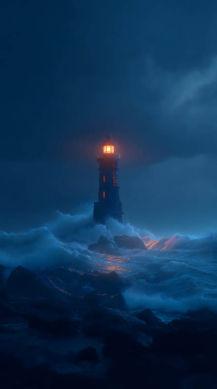 风暴中灯塔的光芒指引方向