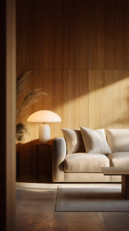 温馨室内光影沙发木质墙面