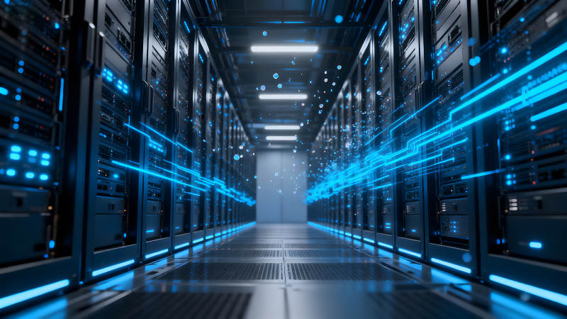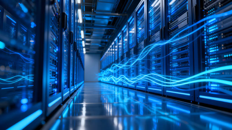 数据中心服务器蓝色光线连接