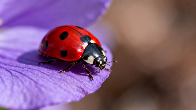 瓢虫栖息紫色花瓣上