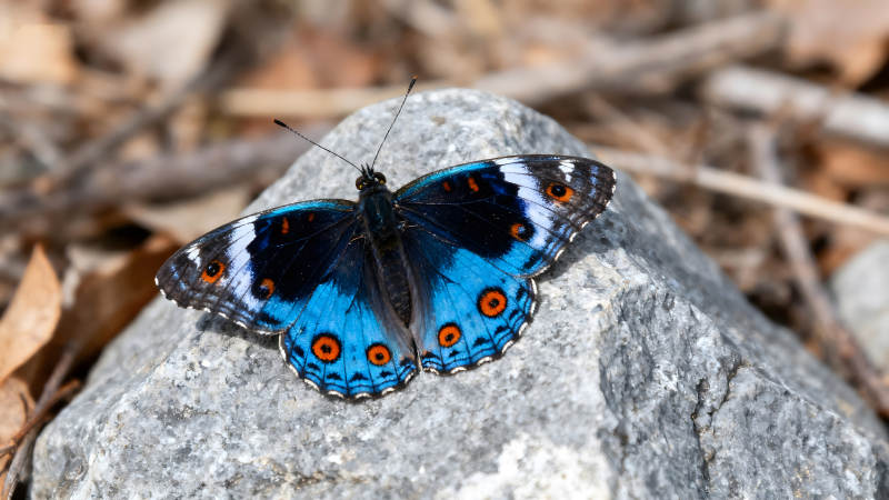 蓝眼蝶停在石头上