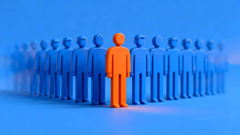 蓝色人形站立一橙色人形突出