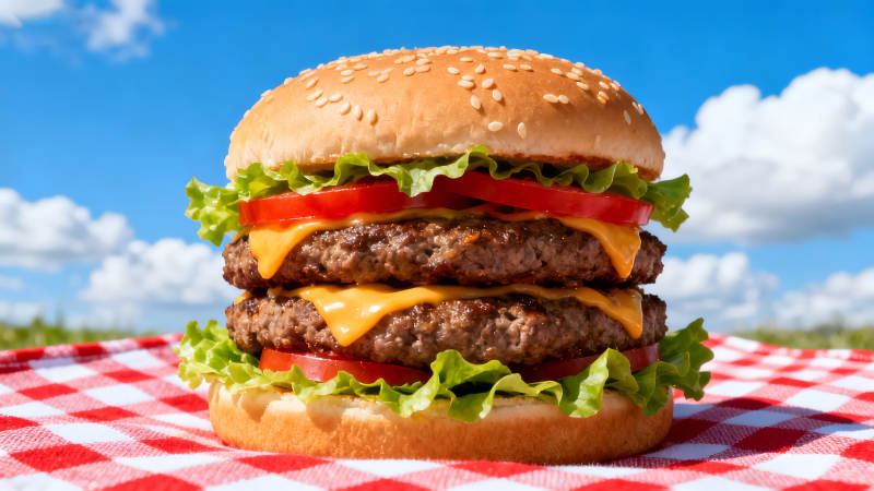 美味双层芝士汉堡户外野餐