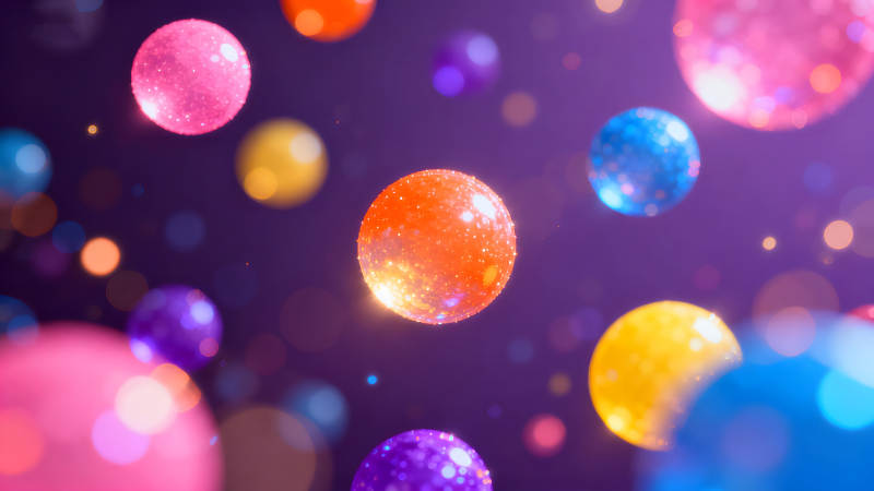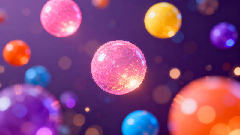 多彩气泡悬浮于深紫色背景