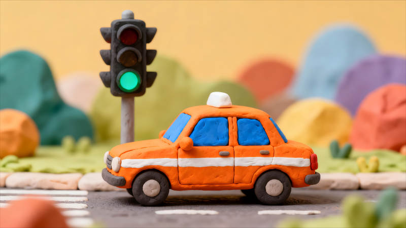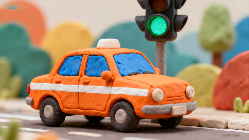 粘土小车在绿灯前等待