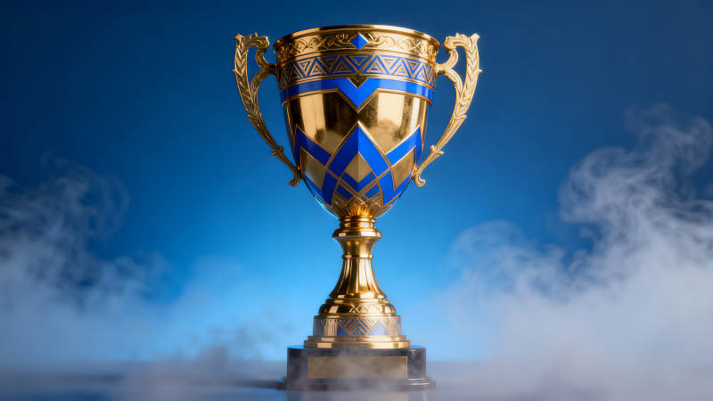 金杯特写蓝底烟雾背景