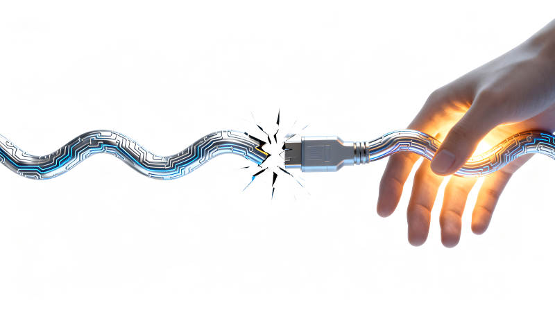 断裂的电路与触碰的手