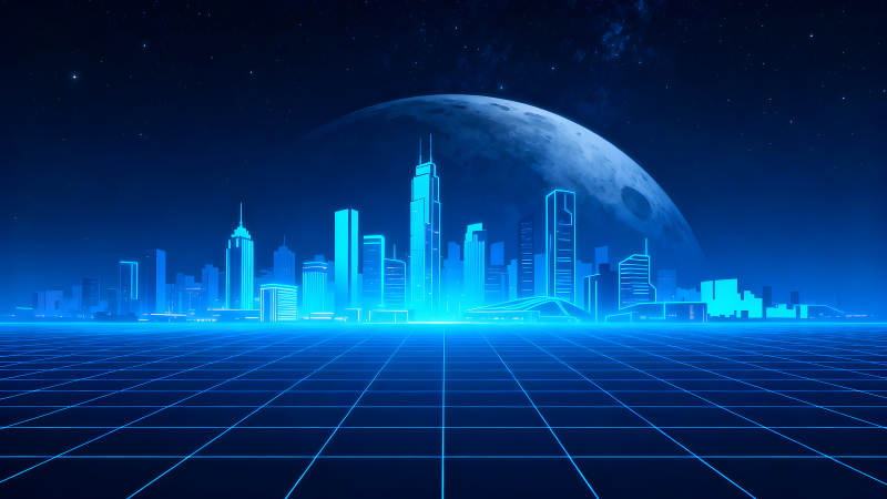 赛博朋克城市夜景蓝色调
