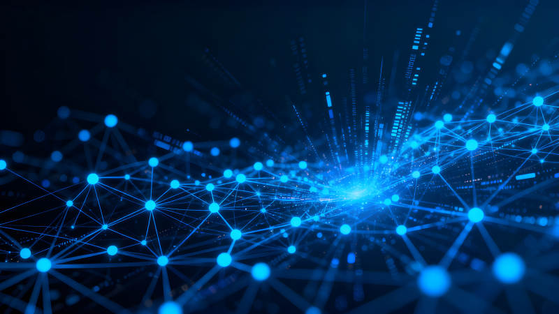 蓝色网络节点连接的抽象数字世界