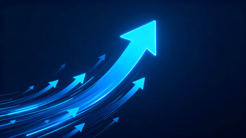 蓝色箭头向上象征着增长