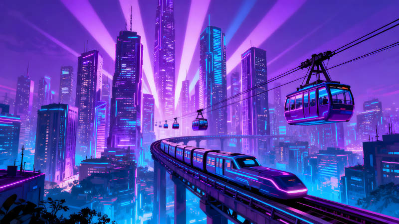 赛博朋克风格未来城市交通