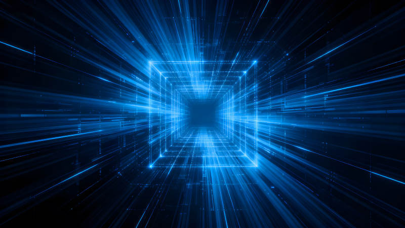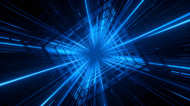 蓝色光线构成的科幻隧道